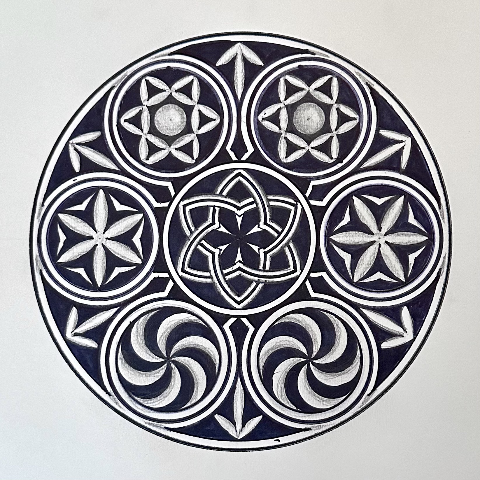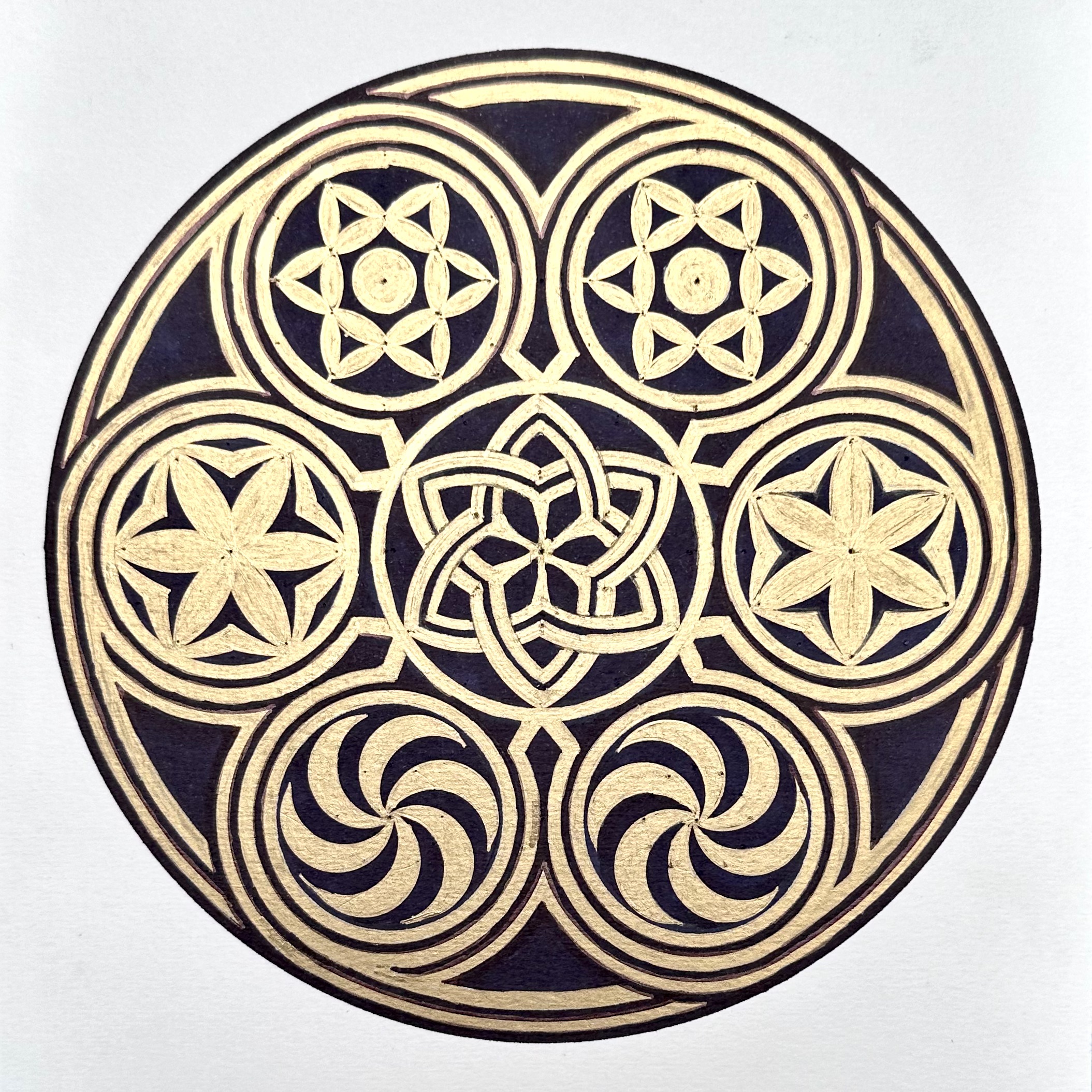 I’ve broken down the original sacred-geometry roundel into clear, precise steps so you can draw the complete pattern perfectly by hand — including the mandala with its four intricate internal circular motifs.